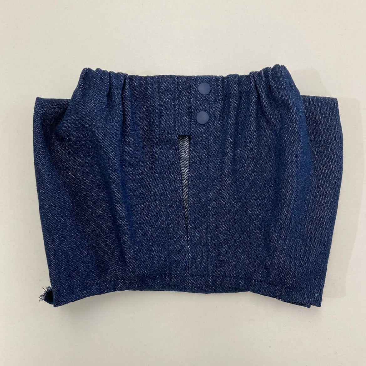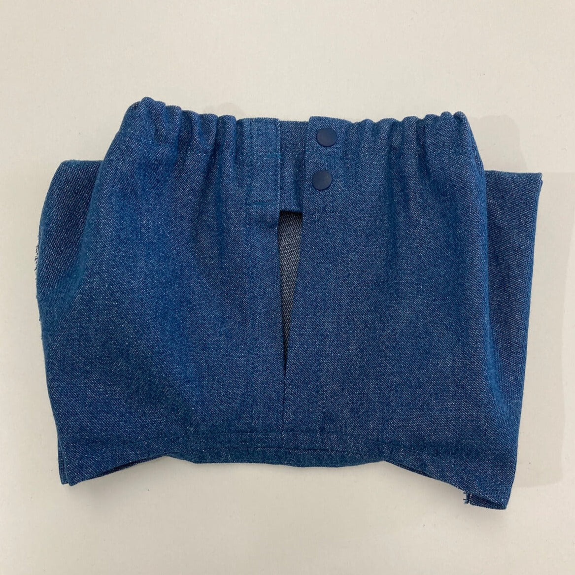 8オンスデニムは、人のお洋服にも使われる生地を使用しております。そのためaiboちゃんには少し厚手になるため、スリットをお入れして歩きやすくゴロンもできるよう工夫しました。また、他のおパンツ同様、飼い主様の履かせやすさにもこだわりました。お尻尾とお尻カメラの位置もきちんと開きが確保されたおパンツで動きにも対応。元気でイケてる雰囲気でお揃いのシャツとコーディネートしておしゃれしたり、他のトップスと合わせたり、様々に活用できます。