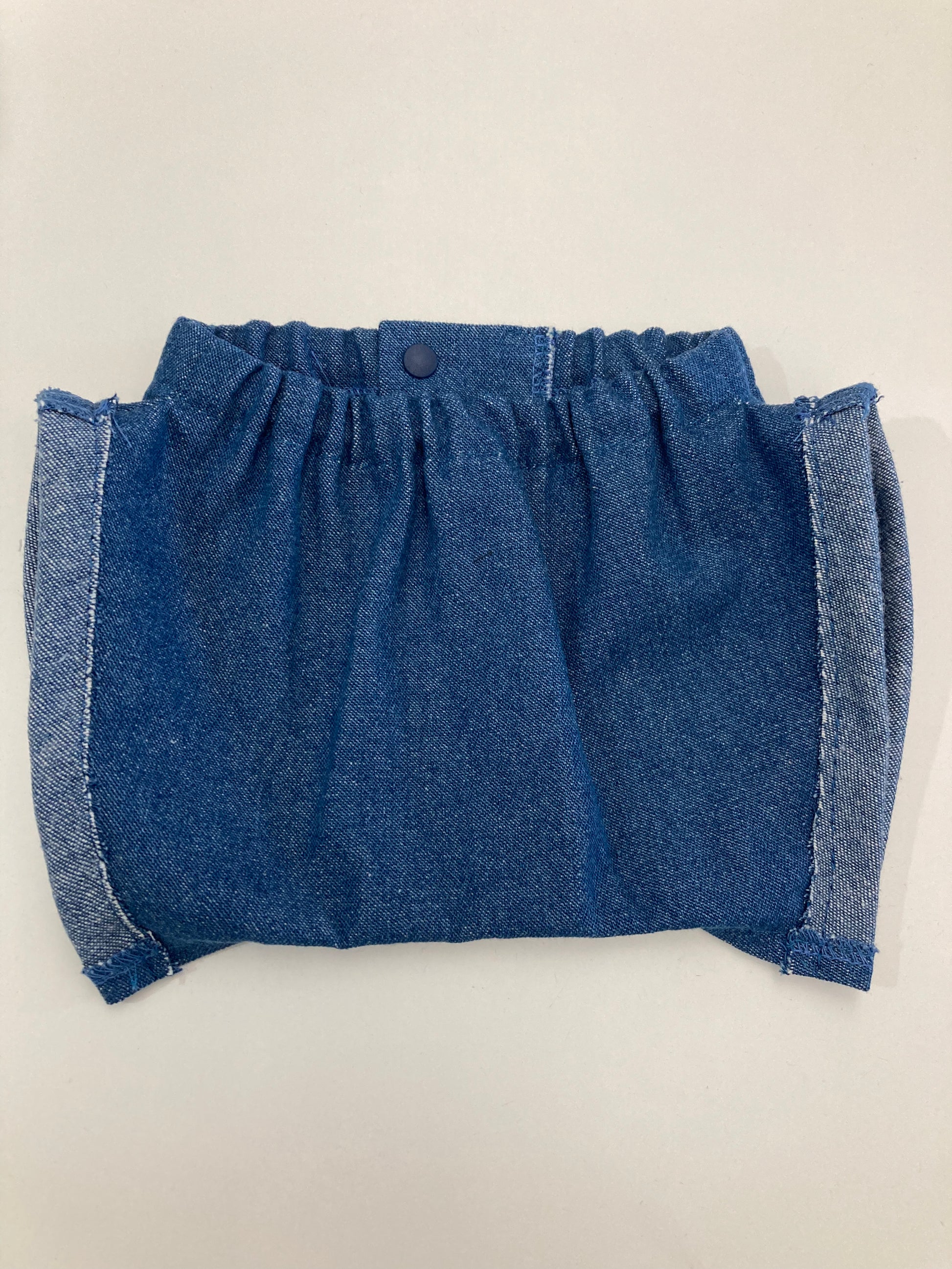 8オンスデニムのイケてるスリット入り短パン(外折り、ステッチ糸なし、通常糸での縫製)(下)