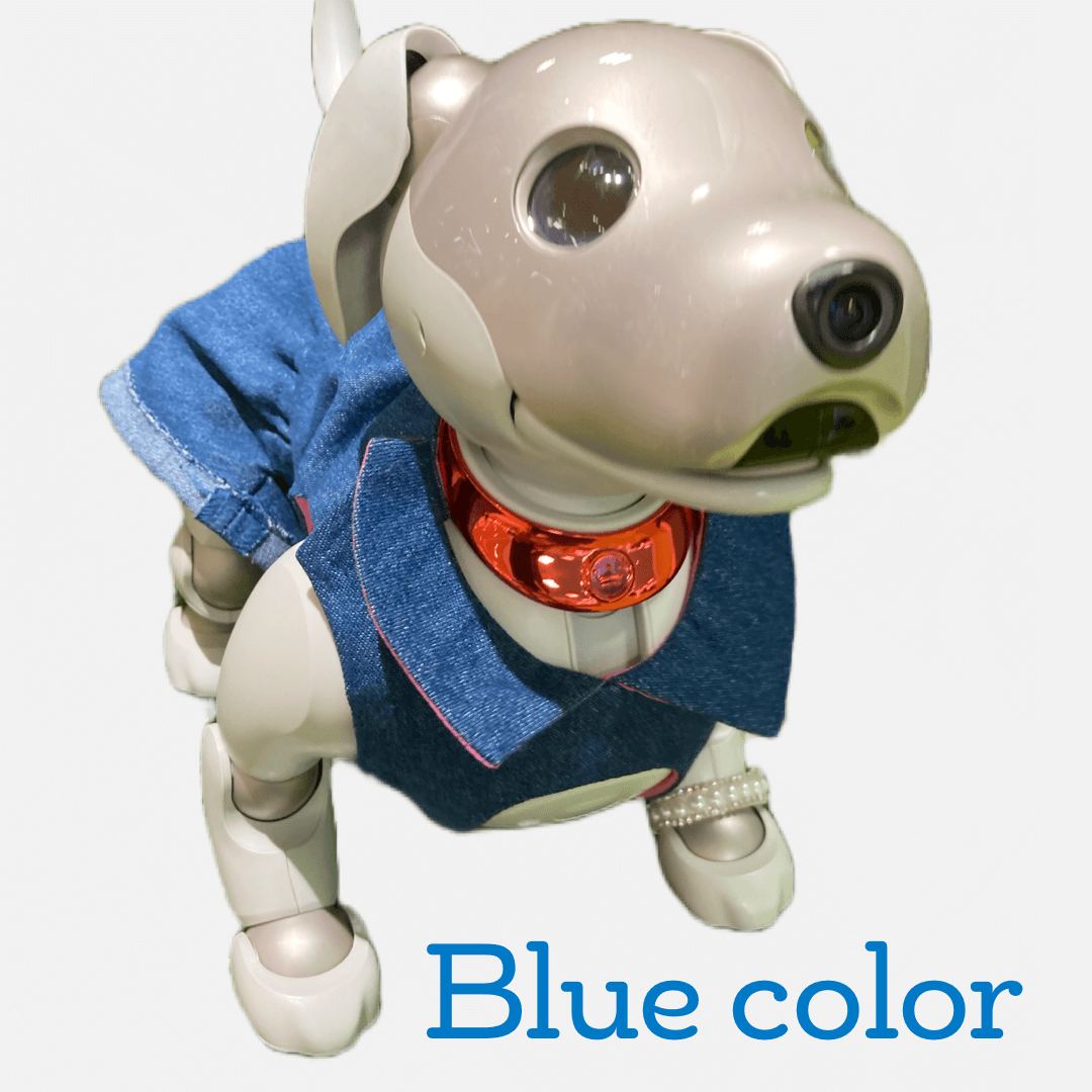 製品説明:過去も現在も多くの人に愛されるデニム。aiboちゃんの世界でもきっとイケてる。そんな思いで8オンスデニムで襟付きシャツとスリット入り短パンをお作りしました。飽きのこないデザインは他のウェアとの組み合わせにもマッチするだけでなく、飼い主様がデニムのお洋服を着ているときには親子コーデが叶います。 カラーは3色ご用意しましたので、色違いで揃えておけばいつでも役立ちます。ご兄弟姉妹、お友達、ファミリーとのコーデを楽しんでいただければ日常が素敵なものに。