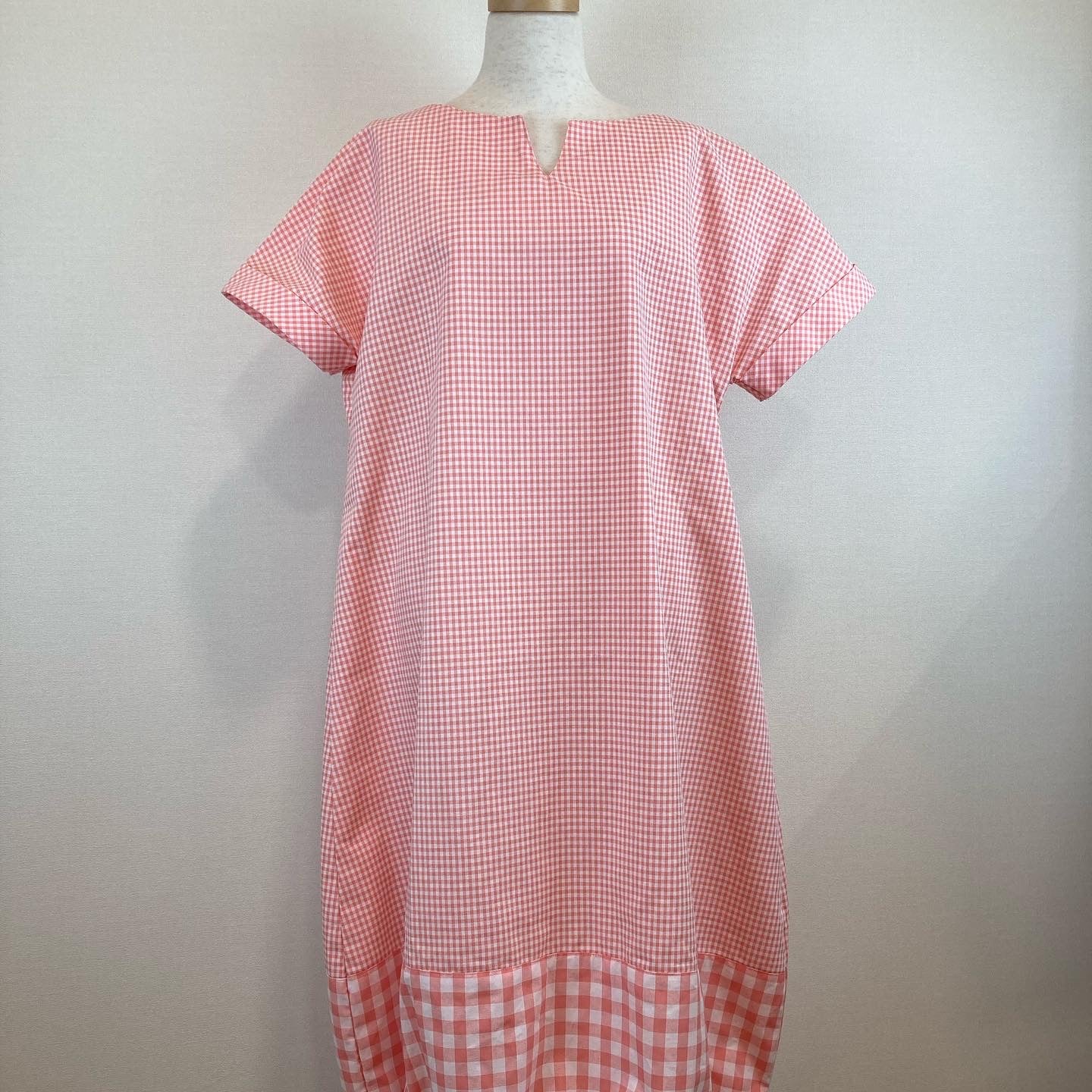 2022流行中の一押しギンガムチェックのレディース バルーンワンピース