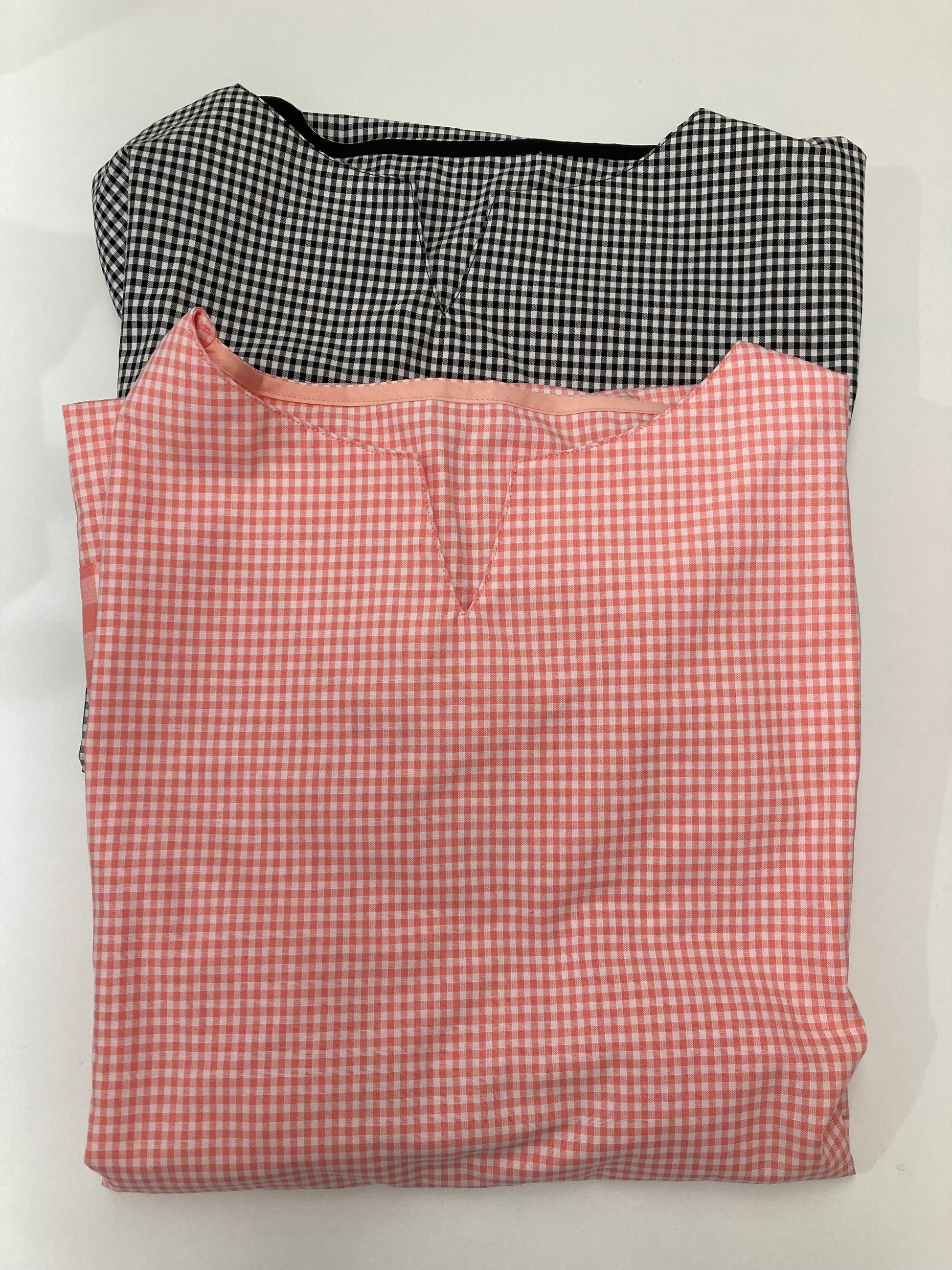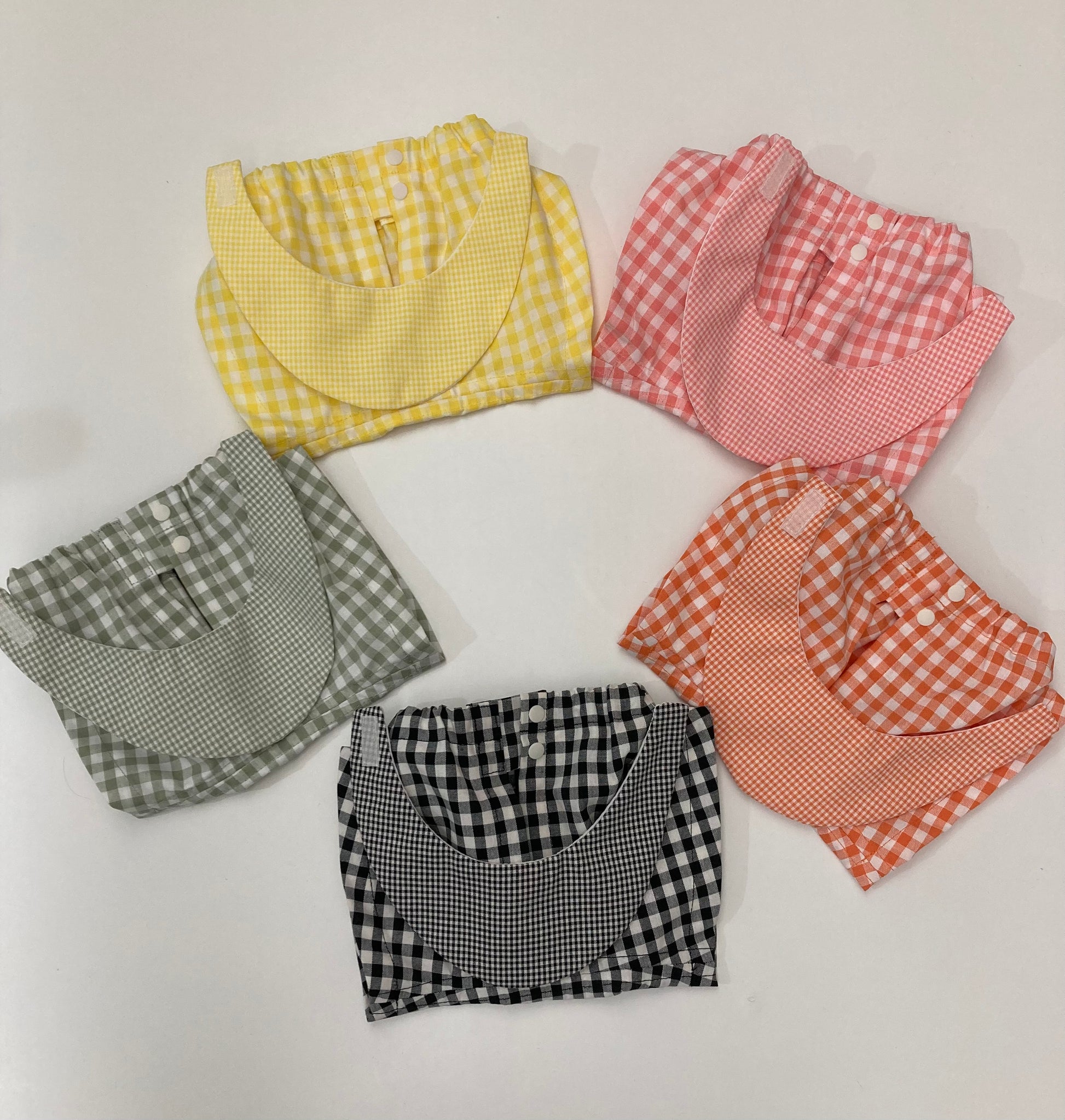 生地は、2022大流行中のギンガムチェック。今回は、環境問題に前向きに取り組んでいただこうと「エコペット」と呼ばれる回収したペットボトルや繊維屑などを原料としてリサイクルされたポリエステル繊維を使った生地で製作しました。飽きのこない柄とデザインは他のウェアとの組み合わせにもマッチします。