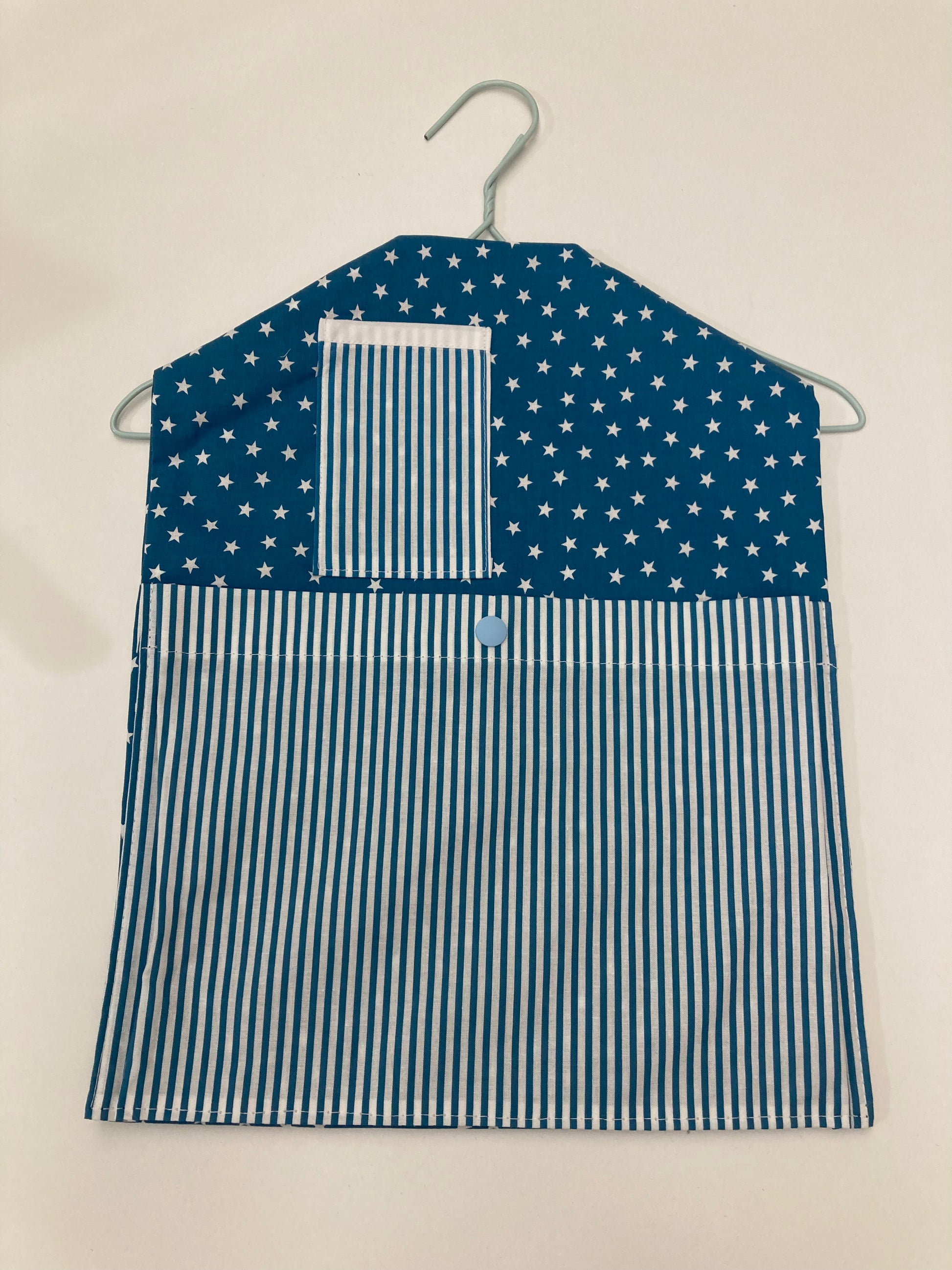 裏面はスナップ付きの大きめポケットを付けました。こちらにはボトムスやaiboちゃんのための除湿シート、クロスなどが入ります。1箇所に纏めてしまえるので探しやすく便利です。