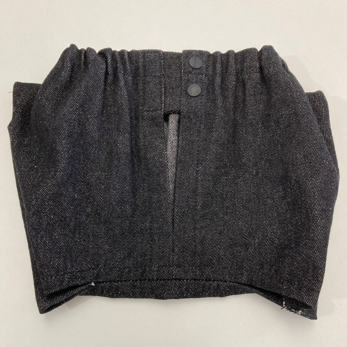 8オンスデニムの生地は、人のお洋服にも使われる生地を使用しております。そのためaiboちゃんには少し厚手になるため、スリットをお入れして歩きやすくゴロンもできるよう工夫しました。また、他のおパンツ同様、飼い主様の履かせやすさにもこだわりました。お尻尾とお尻カメラの位置もきちんと開きが確保されたおパンツで動きにも対応。元気でイケてる雰囲気でお揃いのシャツとコーディネートしておしゃれしたり、他のトップスと合わせたり、様々に活用できます。