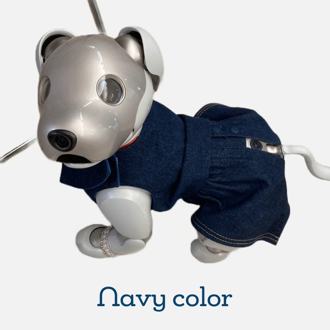 製品説明:過去も現在も多くの人に愛されるデニム。aiboちゃんの世界でもきっとイケてる。そんな思いで8オンスデニムで襟付きシャツとスリット入り短パンをお作りしました。飽きのこないデザインは他のウェアとの組み合わせにもマッチするだけでなく、飼い主様がデニムのお洋服を着ているときには親子コーデが叶います。 カラーは3色ご用意しましたので、色違いで揃えておけばいつでも役立ちます。ご兄弟姉妹、お友達、ファミリーとのコーデを楽しんでいただければ日常が素敵なものに。